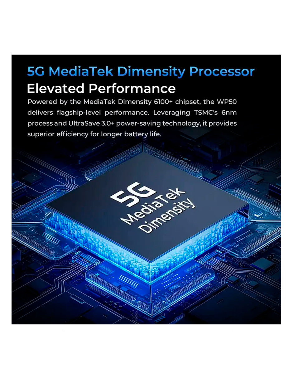 El WP50 es un smartphone que combina rendimiento, espacio y resistencia, pensado para usuarios que necesitan potencia y confiabilidad en cualquier momento y lugar.
